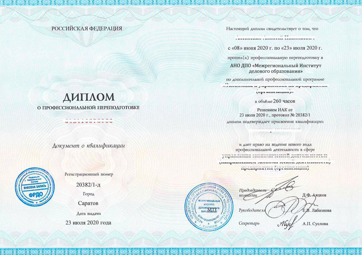 Диплом о профессиональной переподготовке с занесением в Федеральный реестр документов об образовании (ФРДО).